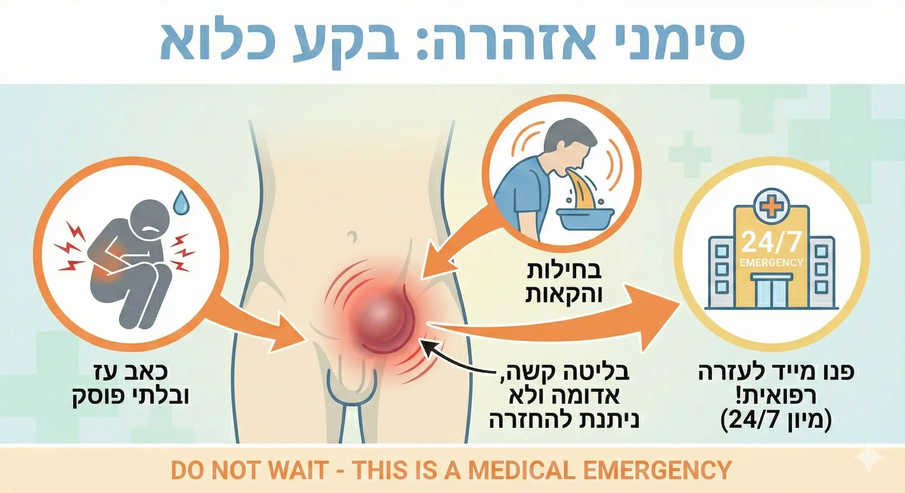 חשוב להבין: רוב הבקעים אינם מסוכנים באופן מיידי, אך כולם נושאים פוטנציאל לסיבוך הנקרא "כליאה" (Incarcerated Hernia).